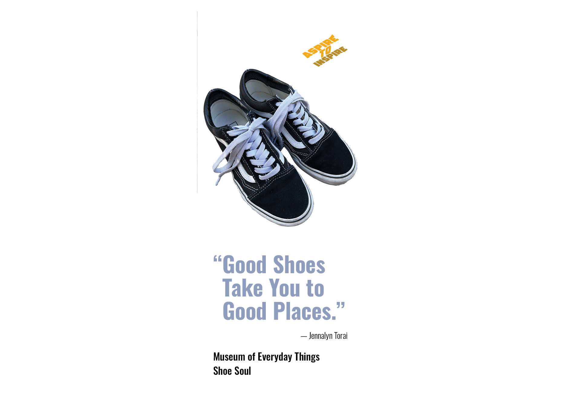 The Shoe Soul exhibition brochure explores a pair of Old Skool Classic Vans for the Museum of Everyday Things. This project was intended to show others that Vans are not only suitable for skateboarding but also for everyday use as well.